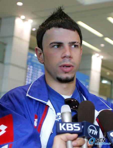 오는 16일 한국과 친선경기를 가질 세르비아-몬테네그로 대표팀이 14일 낮 인천공항을 통해 입국했다. 간판 공격수인 마테야 케즈만이 국내 취재진과 인터뷰하고 있다./인천공항=주지영 기자 jj0jj0@osen.co.kr [Copyright ⓒ OSEN(www.osen.co.kr) 무단전재 및 재배포 금지]