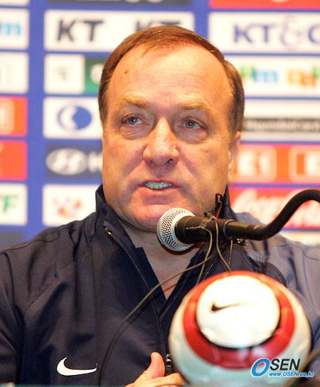16일 세르비아-몬테네그로와의 친선경기에 앞서 한국대표팀이 15일 오전 서울 홍은동 그랜드 힐튼 호텔에서 합동 인터뷰를 가졌다. 선수들의 인터뷰에 이어 기자회견을 가진 아드보카트 감독이 기자의 질문에 답변하고 있다./주지영 기자 jj0jj0@osen.co.kr [Copyright ⓒ OSEN(www.osen.co.kr) 무단전재 및 재배포 금지]