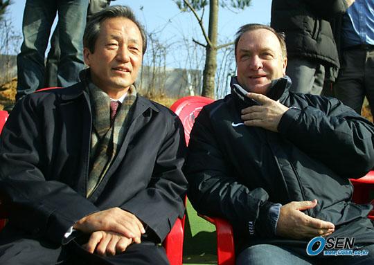 나란히 앉아있는 정몽준 회장과 아드보카트 감독