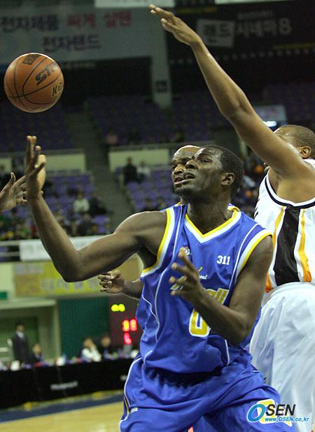 19일 인천 전자랜드 블랙슬래머와 삼성 썬더스의 부천 경기에서 삼성의 오예데지가 골밑 슛을 시도했으나 실패하고 있다. 뒤에는 온타리오 렛이 손을 뻗고 있다./부천=주지영 기자 jj0jj0@osen.co.kr [Copyright ⓒ OSEN(www.osen.co.kr) 무단전재 및 재배포 금지]