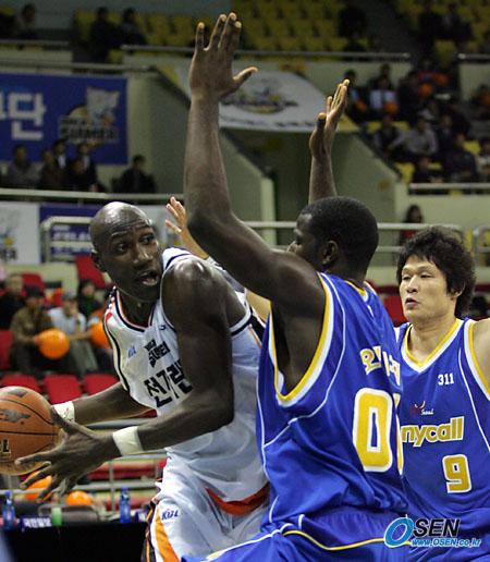 19일 인천 전자랜드 블랙슬래머와 삼성 썬더스의 부천 경기에서 리 벤슨이 오예데지를 피하며 드리블 하고 있다./부천=주지영 기자 jj0jj0@osen.co.kr [Copyright ⓒ OSEN(www.osen.co.kr) 무단전재 및 재배포 금지]