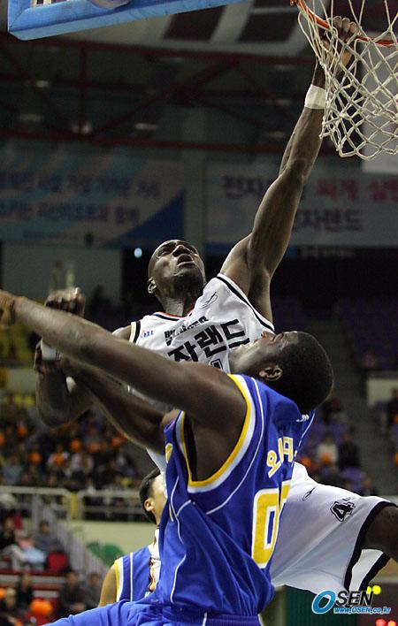 19일 인천 전자랜드 블랙슬래머와 삼성 썬더스의 부천 경기에서 인천의 리 벤스이 오예데지의 방해로 덩크슛을 실패하자 림을 잡고 안타까워 하고 있다./부천=주지영 기자 jj0jj0@osen.co.kr [Copyright ⓒ OSEN(www.osen.co.kr) 무단전재 및 재배포 금지]