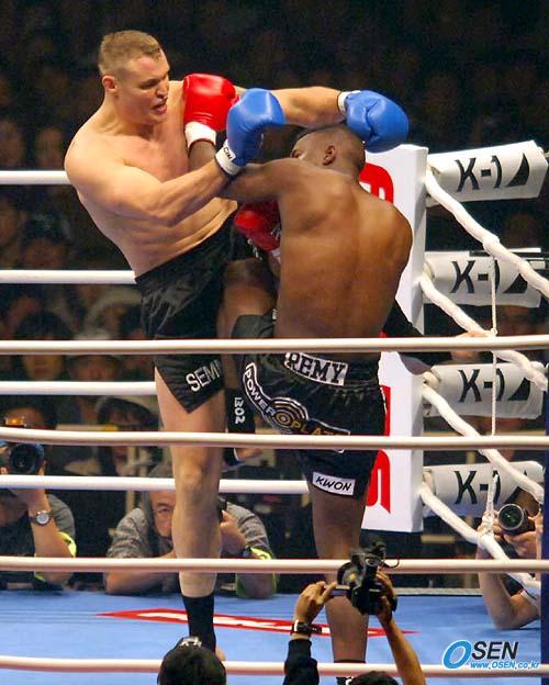 19일 일본 도쿄돔에서 열린 K-1 월드그랑프리 파이널 준결승 새미 쉴트와 디펜딩 챔피언 레미 본야스키의 경기는 쉴트가 강력한 니킥으로 본야스키의 복부를 공략 KO승을 거두는 이변을 일으켰다. 쉴트가 니킥으로 본야스키의 복부를 공략하고 있다./도쿄돔=송석린기자song@osen.co.kr [Copyright ⓒ OSEN(www.osen.co.kr) 무단전재 및 재배포 금지]