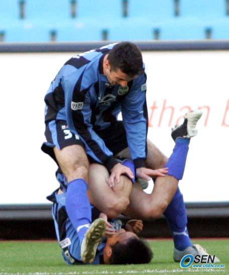 특이한 골 세레머니를 하는 방승환