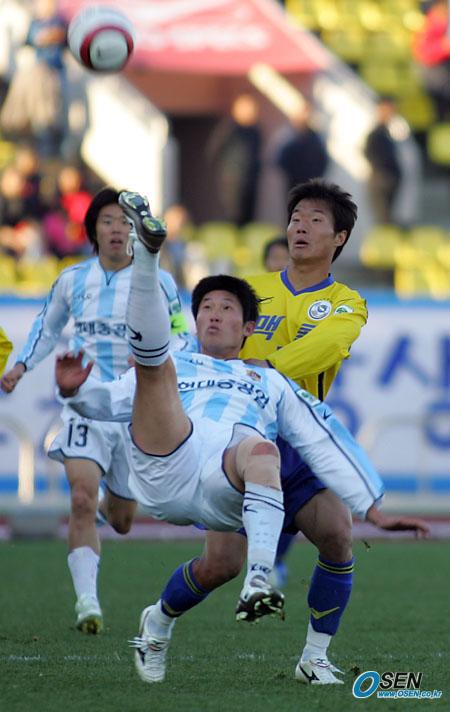 20일 성남종합운동장에서 열린 성남 일화와 울산 현대의 플레이오프 후반전서 울산의 조세권이 오버헤드 킥 으로 공을 패스하고 있다./성남=주지영 기자 jj0jj0@osen.co.kr [Copyright ⓒ OSEN(www.osen.co.kr) 무단전재 및 재배포 금지]