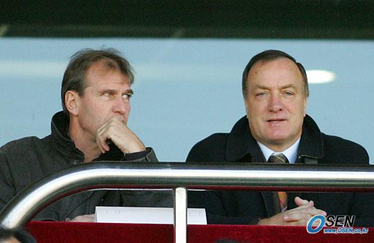 20일 성남종합운동장에서 열린 성남 일화와 울산 현대의 플레이오프에 국가대표팀의 아드보카트 감독과 베에벡 코치가 찾아와 경기를 관전 하고 있다./성남=주지영 기자 jj0jj0@osen.co.kr [Copyright ⓒ OSEN(www.osen.co.kr) 무단전재 및 재배포 금지]