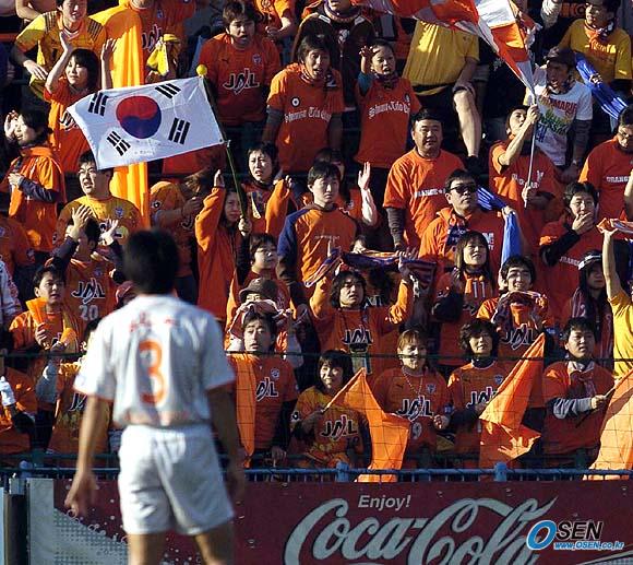 일본 J리그 시미즈 S-펄스에서 활약하고 있는 최태욱이 올시즌 정규리그 4호골을 터뜨렸다. 최태욱은 20일 일본 지바현 가시와시의 히타치 스타디움에서 가진 가시와 레이솔과의 2005 J리그 정규리그 31차전 원정경기에서 1-1로 동점이던 후반 44분 조재진의 어시스트를 받아 역전 결승골을 터뜨리며 팀의 2-1 승리를 이끌었다. 최태욱의 결승골이 터지자 관중석에 태극기가 휘날리고 있다./지바=송석린 기자song@osen.co.kr [Copyright ⓒ OSEN(www.osen.co.kr) 무단전재 및 재배포 금지]