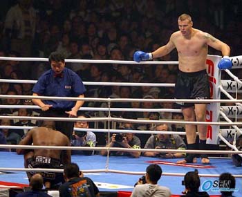 K-1 월드 그랑프리 2005 파이널에서 우승을 차지한 '장신 가라테 전사' 세미 쉴트(32)와 K-1 월드 그랑프리에서 4차례 정상에 오른 네덜란드 선배 어네스트 호스트(40)가 12월31일 K-1 다이너마이트 대회에서 맞붙는 것이 유력해지고 있다. 일본 스포츠신문 는 K-1 월드 그랑프리 2005 파이널이 끝난 뒤 가진 축하연에서 쉴트가 "내가 챔피언에 올랐고 상대가 호스트이든 마이크 타이슨이든 도전을 받겠다"고 말했다고 21일 보도했다. 또 일본 스포츠 전문 사이트 역시 시상식 당시 쉴트가 호스트로부 도전 의사를 받았다고 보도했다. 특히 이 사이트는 K-1 팬클럽을 대상으로 하는 축하연에서 호스트가 "쉴트가 가지고 있는 챔피언 벨트를 보니 싸우고 싶은 생각이 들었다. 12월 31일에 꼭 대결을 하자"고 '선전포고'를 했고 이에 대해 쉴트가 "언젠가 호스트와 꼭 겨루어보고 싶었다. 그 의사를 받아들이겠다"고 말했다고 덧붙였다. 이것을 지켜보던 다니카와 사다하루 FEG 대표 겸 K-1 이벤트프로듀서는 "지금부터 대진표를 조정해나가야 한다"며 즉석에서 경기를 주선하는데 주저했지만 쉴트와 호스트 모두 맞대결을 원하고 있다는 점 때문에 경기가 열릴 것으로 보인다고 이 사이트는 내다봤다. 한편 쉴트는 입식 격투기 룰로 치러진 경기에서 월드 그랑프리 2005 파이널까지 13전 12승(4KO승) 1무승부의 전적을 기록했다. 바로 1무승부가 지난 2002년 8월 28일 열렸던 호스트와 가졌던 다이너마이트 대회에서 거둔 전적이다. 쉴트와 호스트의 '리매치'가 열릴 경우 쉴트로서는 '대선배' 호스트의 뒤를 잇는 챔피언으로 인정을 받는 셈이 된다. 박상현 기자 tankpark@osen.co.kr 지난 19일 월드 그랑프리 준결승서 3연패를 노리던 보냐스키를 다운시키고 서 있는 쉴트 [Copyright ⓒ OSEN(www.osen.co.kr) 무단전재 및 재배포 금지]