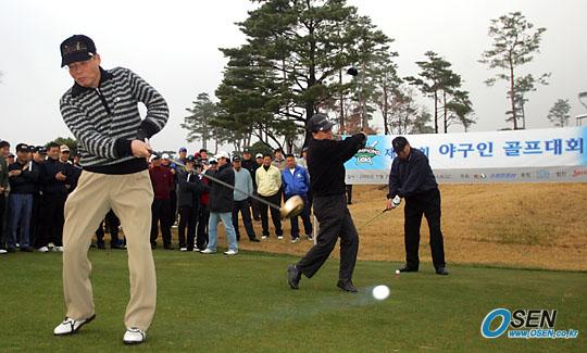 김응룡 사장 등 야구인 골프대회 시타