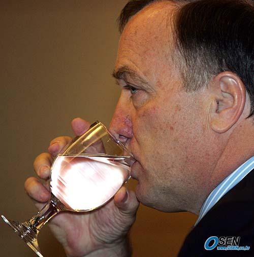 21일 그랜드 힐튼 호텔에서 아드보카트 국가대표감독이 기자들과 간담회를 가졌다. 아드보카트 감독이 프로축구 클럽이 전지훈련의 선수 차출에 협조를 하지 않으면 그 선수들은 독일 월드컵에 데리고 가지 않겠다고 단호하게 얘기를 한 후 물을 들이키고 있다. /손용호 기자 spjj@osen.co.kr [Copyright ⓒ OSEN(www.osen.co.kr) 무단전재 및 재배포 금지]