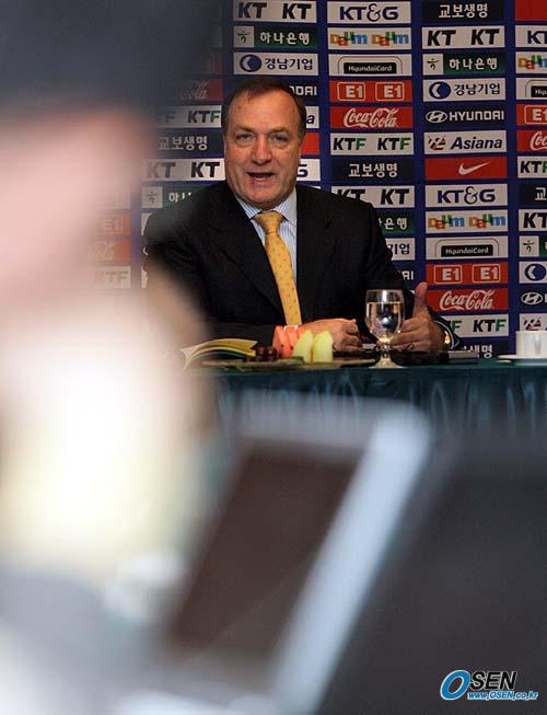 21일 그랜드 힐튼 호텔에서 아드보카트 국가대표감독이 기자들과 간담회를 가졌다. 아드보카트 감독이 프로축구 클럽이 전지훈련의 선수 차출에 협조를 하지 않으면 그 선수들은 독일 월드컵에 데리고 가지 않겠다고 단호하게 얘기를 하고 있다./손용호기자spjj@osen.co.kr [Copyright ⓒ OSEN(www.osen.co.kr) 무단전재 및 재배포 금지]
