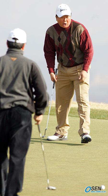 21일 오전 9시부터 제 24회 야구인 골프대회가 올해 한국시리즈 우승팀인 삼성 라이온즈 후원으로 가평 베네스트 C.C에서 열렸다. 삼성 선동렬 감독이 공이 빗나가자 아쉬워하고 있다. /가평=주지영 기자 jj0jj0@osen.co.kr [Copyright ⓒ OSEN(www.osen.co.kr) 무단전재 및 재배포 금지]
