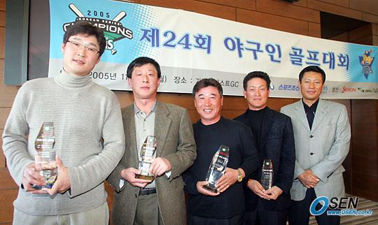 21일 오전 9시부터 제 24회 야구인 골프대회가 올해 한국시리즈 우승팀인 삼성 라이온즈 후원으로 가평 베네스트 C.C에서 열렸다. 우승한 삼성 김한수와 준우승한 중앙일보 성백유 기자, 메달리스트상을 받은 김광수, 3위 장태수, 롱기스트상의 양승관이 기념 사진을 찍고 있다./가평=주지영 기자 jj0jj0@osen.co.kr [Copyright ⓒ OSEN(www.osen.co.kr) 무단전재 및 재배포 금지]