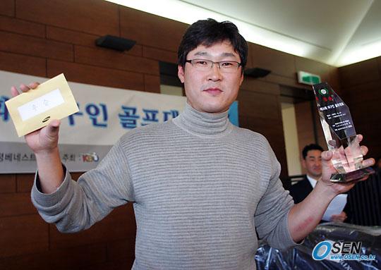 21일 오전 9시부터 제 24회 야구인 골프대회가 올해 한국시리즈 우승팀인 삼성 라이온즈 후원으로 가평 베네스트 C.C에서 열렸다. 우승한 김한수가 트로피와 상금증서를 들어 보이고 있다. /가평=주지영 기자 jj0jj0@osen.co.kr [Copyright ⓒ OSEN(www.osen.co.kr) 무단전재 및 재배포 금지]