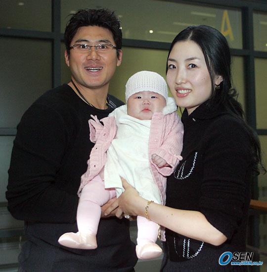뉴욕 메츠의 서재응이 22일 새벽 5시 35분 인천공항을 통해 귀국했다. 서재응과 약혼녀 이주현 씨가 딸 혜린 양을 안고 취재진을 위해 포즈를 취하고 있다. 서재응은 오느 12월 25일 정식 결혼식을 올린다. /인천공항=주지영 기자 jj0jj0@osen,co.kr [Copyright ⓒ OSEN(www.osen.co.kr) 무단전재 및 재배포 금지]