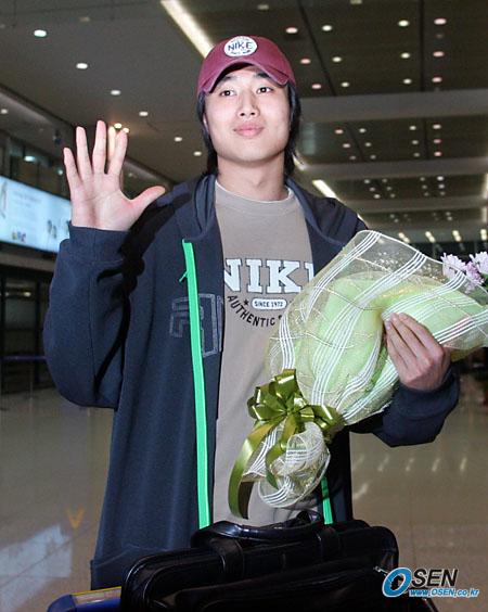 NBA 진출을 보류하고 서울 SK에 전격 입단한 방성윤이 22일 아침 로스앤젤레스에서 인천공항을 통해 귀국했다. 방성윤이 입국장을 나와 출영객들에게 손을 흔들고 있다./인천공항=주지영 기자 jj0jj0@osen,co.kr [Copyright ⓒ OSEN(www.osen.co.kr) 무단전재 및 재배포 금지]