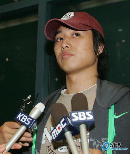 NBA 진출을 보류하고 서울 SK에 전격 입단한 방성윤이 22일 새벽 로스앤젤레스로부터 인천공항을 통해 귀국했다. 방성윤이 보도진과 인터뷰하고 있다./인천공항=주지영 기자 jj0jj0@osen,co.kr [Copyright ⓒ OSEN(www.osen.co.kr) 무단전재 및 재배포 금지]