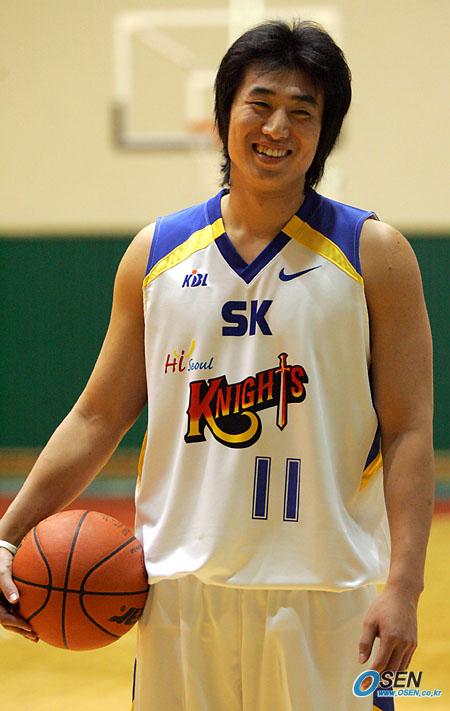 서울 SK 유니폼을 입고 활짝 웃는 방성윤