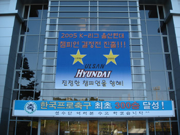 9년만에 정상에 도전하는 울산 현대가 '챔피언' 일색의 현수막과 음악으로 우승을 염원하고 있다. 울산은 챔피언결정전에 나서는 선수들의 우승 의지를 북돋우기 위해 클럽하우스 전면에 대형 '챔피언결정전 진출기념' 현수막을 내걸었다(사진). 지난 20일 성남 일화와의 단판 플레이오프에서 2-1로 역전승을 거두고 23일부터 본격적인 담금질에 나서는 선수들에게 기운을 불어넣으려는 일환이다. 울산은 이에 그치지 않고 음악을 동원해 선수들에게 우승 의지를 주입시키고 있다. 구단에서는 식사시간과 이동하는 버스 안에서 챔피언과 관련된 퀸의 'We are the Champions'과 조수미의 '챔피언' 등을 틀어주고 있다고 전했다. 국영호 기자 iam905@osen.co.kr [Copyright ⓒ OSEN(www.osen.co.kr) 무단전재 및 재배포 금지]