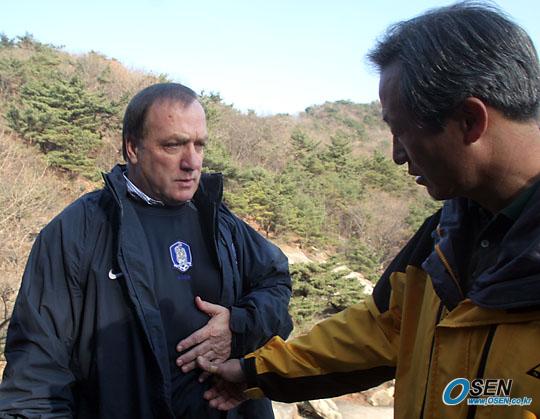 24일 오후 열린 대한축구협회 북한산 등반에 이날 귀국한 딕 아드보카트 감독이 참가했다. 정몽준 협회장이 등산 도중 아드보카트 감독의 배를 만지며 이야기를 나누고 있다./북한산=주지영 기자 jj0jj0@osen.co.kr [Copyright ⓒ OSEN(www.osen.co.kr) 무단전재 및 재배포 금지]