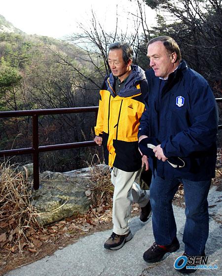 나란히 산을 오르는 아드보카트와 정몽준 회장