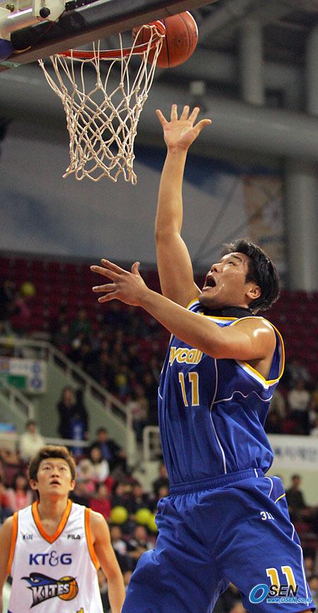 25일 안양 실내체육관에서 벌어진 안양 KT&G와 서울 삼성의 경기서 삼성의 서장훈이 소리를 지르며 골밑슛을 성공시키고 있다. 뒤에서 KT&G의 전병석이 바라보고 있다./안양=주지영 기자 jj0jj0@osen.co.kr [Copyright ⓒ OSEN(www.osen.co.kr) 무단전재 및 재배포 금지]