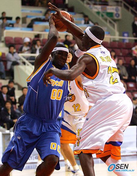 25일 안양 실내체육관에서 벌어진 안양 KT&G와 서울 삼성의 경기서 삼성의 올루미데 오예데지가 골밑을 파고 들다 KT&G의 새 용병 허브 래미쟈나에게 막히고 있다./안양=주지영 기자 jj0jj0@osen.co.kr [Copyright ⓒ OSEN(www.osen.co.kr) 무단전재 및 재배포 금지]