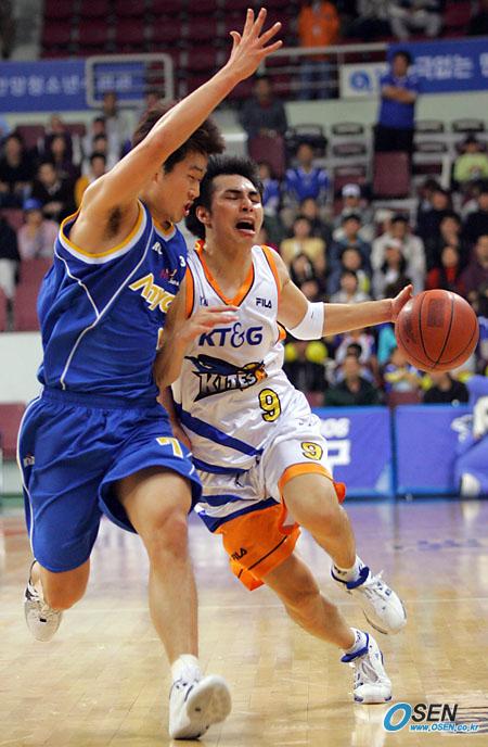 25일 안양 실내체육관에서 벌어진 안양 KT&G와 서울 삼성의 경기서 KT&G의 주희정이 삼성 강혁의 밀착 마크를 받으며 드리블하고 있다./안양=주지영 기자 jj0jj0@osen.co.kr [Copyright ⓒ OSEN(www.osen.co.kr) 무단전재 및 재배포 금지]