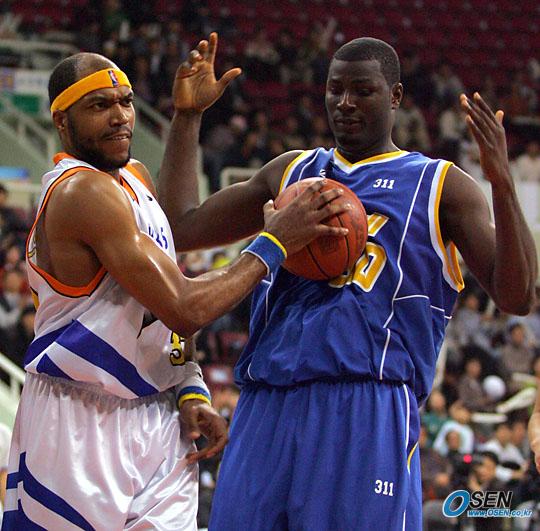 25일 안양 실내체육관에서 벌어진 안양 KT&G와 서울 삼성의 경기서 KT&G의 단테 존스가 슛을 성공시킨 뒤 볼을 다시 잡아 인상을 쓰며 삼성 오예데지의 가슴팍을 치며 볼을 넘겨주고 있다. 이로 인해 존스는 테크니컬 파울을 선언당했다./안양=주지영 기자 jj0jj0@osen.co.kr [Copyright ⓒ OSEN(www.osen.co.kr) 무단전재 및 재배포 금지]