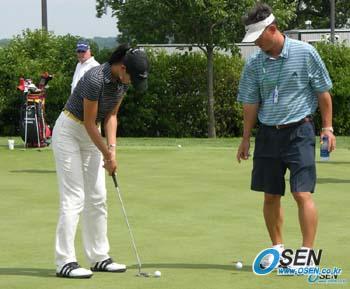 불과 한 타 차로 컷을 통과하지 못했다. 6번째 도전에서도 컷 통과에 실패한 그녀는 눈물을 글썽인 채 돌아서야 했다. 하지만 그녀는 다음에도 또 도전장을 내밀 태세다. 아직 갈 길이 멀기 때문이다. 위성미(16.미국명 미셸 위)가 또 한 번 분루를 삼켰다. 위성미는 지난 25일 일본 고치현 구로시오CC(파72ㆍ7270야드)에서 열린 일본프로골프(JGTO) 투어 카시오오픈(총 상금 1억 4000만 엔) 2라운드에서 3오버파 75타를 쳐 이틀간 합계 4오버파 148타를 기록, 1타차로 컷 통과에 실패했다. 프로 데뷔 후 처음 출전한 남자대회였지만 역시 벽은 높았다. 2라운드 막판 17번홀과 18번홀서 보기 실수를 범하지 않았으면 60년만에 여자로서 첫 남자대회 예선통과라는 진기록을 수립할 수 있었지만 어린 나이에 따른 심적인 부담을 이겨내지 못해 다음을 기약해야 했다. '천재 골프소녀'인 위성미는 2003년부터 남자대회에 출전, '성대결'에 나서고 있다. 2003년 1월 고향인 미국 하와이에서 열린 PGA 투어 대회인 소니오픈 월요예선에 도전했으나 예선통과에 실패한 것을 시작으로 이번 일본투어까지 6번 남자대회에 출전해 남자 골퍼들과 대결을 펼쳤다. PGA 투어 대회 3차례, PGA 2부투어 한 번, 캐나다투어 한 번, 그리고 이번 일본투어까지 6번 도전했으나 컷 오프를 면치 못했다. 그러나 위성미는 14세에때 처음 남자대회에 출전했을 때와 비교하면 장족의 발전을 보이고 있어 머지않아 남자대회 컷 통과도 기대할 만하다. 이번 일본투어에서 한 타 차로 아깝게 컷 통과에 실패한 것을 비롯해 올 시즌에도 PGA 투어 소니오픈과 존디어클래식 등에 출전해 남자들과 대등한 대결을 펼쳐 남자 무대에서도 통할 수 있다는 자신감을 쌓았다. 위성미가 이벤트성으로 남자대회에 계속해서 참가하는 것은 2가지 이유로 풀이된다. 첫 번째는 스스로 밝혔듯이 모든 골퍼들의 '꿈의 무대'인 마스터스에 출전하기 위한 초석을 다지기 위한 것이고 2번째는 '골프여제' 애니카 소렌스탐(스웨덴)도 해내지 못한 일을 달성하며 단숨에 LPGA 최강자로 등극할 수 있는 길이기 때문이다. 소렌스탐은 지난해 PGA 투어인 콜로니얼 대회에 출전해 세계 골프인들의 관심을 모았으나 컷 오프됐다. 한계를 느낀 소렌스탐은 "남자대회에는 더 이상 출전하지 않겠다"고 선언했다. 소렌스탐은 이후 레티에프 구센 등 남자 톱프로들과 함께 스킨스 게임에 참가해 호성적을 내고는 있지만 정식 대회에는 출전하지 않고 있다. 한국 여자골프의 대표주자인 박세리(CJ)도 국내에서 열렸던 남자대회에서 10위에 올랐지만 출전 선수들의 면모를 봤을 때 정상적인 성대결이라고 말할 수 없다. 지금까지 PGA 투어 사상 여자선수가 컷을 통과한 것은 1945년 LA 오픈에 출전한 베이브 자하리스(미국) 이후 한 번도 없다. 잇단 실패에도 굴하지 않고 도전장을 내밀고 있는 미셸 위가 남자대회 컷을 통과하면 세계 골프 역사의 한 장을 장식할 대사건인 것이다. 위성미는 일단 하드웨어 측면에서는 충분히 남자대회에서도 통할 재목으로 평가받고 있다. 183cm의 큰 키에 균형잡힌 몸에서 뿜어나오는 최고 300야드에 평균 270야드 안팎인 드라이버거리가 남자들 못지 않고 아이언샷도 안정적이다. 다만 퍼팅과 게임 운영능력이 아직 덜 다듬어졌지만 대회 출전을 거듭할수록 나아지고 있어 조만간 톱프로의 면모를 갖출 전망이다. 위성미가 다음에는 어떤 남자대회에 출전해 도전을 계속할지 지켜볼 일이다. 골프 최고 권위의 대회인 브리티시오픈의 주최측은 내년부터 여자들도 예선을 거쳐 대회에 참가할 수 있다고 밝힌 바 있어 위성미가 이 대회에 출전할지도 관심사다. 박선양 기자 sun@osen.co.kr 아버지 위병욱 씨와 퍼팅 연습을 하고 있는 위성미 [Copyright ⓒ OSEN(www.osen.co.kr) 무단전재 및 재배포 금지]