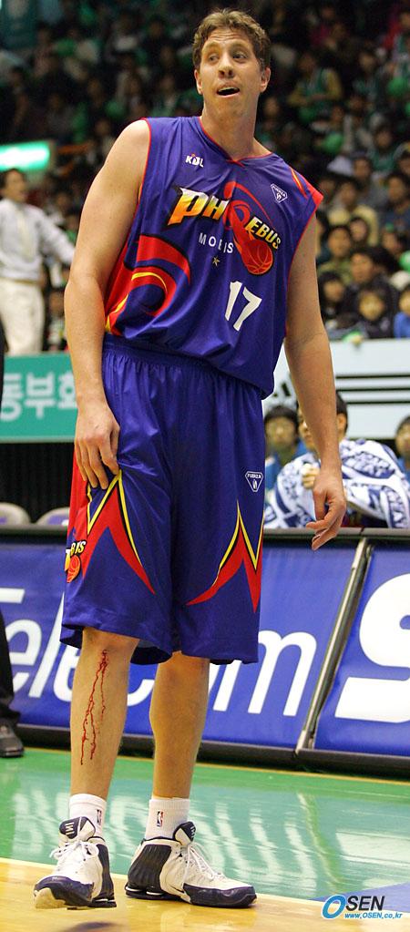 26일 원주 치악체육관에서 벌어진 2005~2006 KCC 프로농구 원주 동부와 울산 모비스의 경기서 모비스이 벤자민 핸드로그텐이 무릎에 상처를 입어 피를 흘리고 있다./원주=주지영 기자 jj0jj0@osen.co.kr [Copyright ⓒ OSEN(www.osen.co.kr) 무단전재 및 재배포 금지]