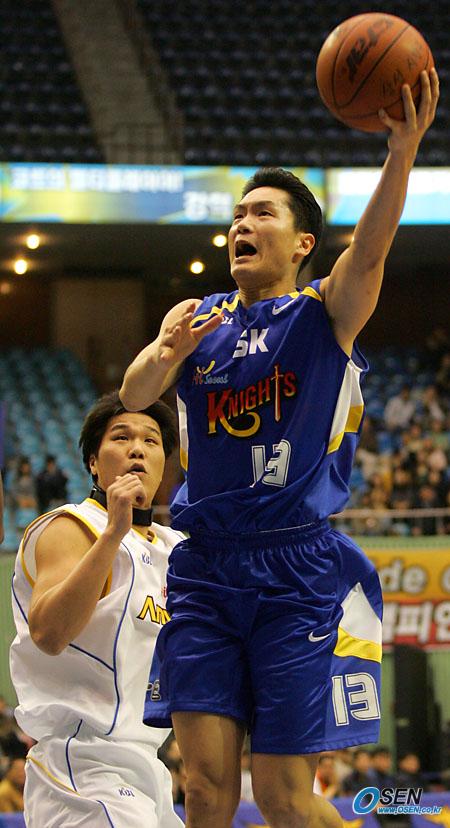 27일 잠실체육관에서 벌어진 2005~2006 KCC 프로농구 삼성과 SK의 서울 라이벌전서 SK의 전희철이 삼성 서장훈을 피하며 왼손 레이업슛을 던지고 있다./잠실체=주지영 기자 jj0jj0@osen.co.kr [Copyright ⓒ OSEN(www.osen.co.kr) 무단전재 및 재배포 금지]