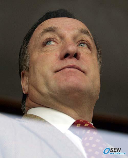 27일 문학 월드컵경기장서 벌어진 2005 삼성 하우젠 K리그 챔피언결정전 1차전 인천 유나이티드와 울산 현대의 경기는 이천수의 3골 1어시스트로 울산이 5-1로 대승을 거두며 챔피언 자리 9부 능선에 올라섰다. 문학 구장을 찾은 아드보카트 대표팀 감독이 경기를 지켜보고 있다./인천=손용호 기자 spjj@osen.co.kr [Copyright ⓒ OSEN(www.osen.co.kr) 무단전재 및 재배포 금지]