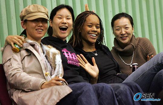 여자 프로농구 삼성생명 선수들이 27일 잠실체육관에서 벌어진 2005~2006 KCC 프로농구 서울 삼성과 서울 SK의 경기를 나란히 앉아 관전하고 있다./잠실체=주지영 기자 jj0jj0@osen.co.kr [Copyright ⓒ OSEN(www.osen.co.kr) 무단전재 및 재배포 금지]