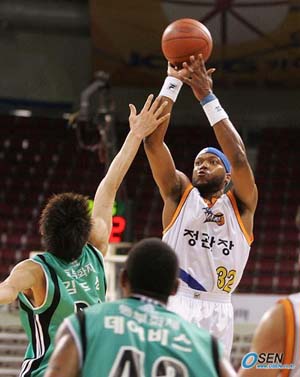 양희승과 김성철 등이 부상으로 빠져 '식스맨'으로 버텨나가고 있는 안양 KT&G가 잇따른 턴오버로 자멸한 원주 동부를 상대로 7연승을 달렸다. KT&G는 29일 안양 실내체육관에서 열린 2005~2006 KCC 프로농구 정규리그 홈경기에서 나란히 '더블더블'을 기록한 단테 존스(38득점, 3점슛 3개, 11리바운드)와 주희정(14득점, 11어시스트)의 활약으로 무려 21개의 턴오버로 자멸한 동부에 82-66로 완승을 거뒀다. 이로써 KT&G는 지난 시즌 2라운드부터 시작된 동부와의 전적을 7연승으로 늘렸고 올시즌 9승7패로 전주 KCC를 6위로 밀어내고 단독 5위로 올라섰다. 반면 지난 시즌 챔피언 동부는 특정팀에게 7연패를 당하는 수모를 당하며 서울 삼성에 승률에서 뒤진 3위로 내려앉았다. 1쿼터에 팀이 올린 25점 중 무려 16점을 몰아친 존스의 활약으로 동부에 5점 앞선 KT&G는 2쿼터에도 한때 11점차까지 앞선 끝에 1, 2쿼터 전반을 44-39로 마쳤다. KT&G는 3쿼터 들어 양경민(13득점, 3점슛 2개)의 자유투 2개 포함 연속 4득점과 김주성(18득점, 6리바운드)의 자유투 2개 성공으로 처음으로 44-45 역전을 허용했지만 전병석(10득점, 3점슛 2개)의 3점슛 1개 포함 연속 5득점과 주희정의 2점슛, 존스의 자유투 3개 성공으로 10득점을 몰아치며 54-45로 다시 앞서나갔다. 결국 3쿼터를 64-54, 10점 앞선채 마쳐 승기를 잡은 KT&G는 4쿼터에서는 6분30초동안 손규완(8득점)의 득점으로 단 2점만 허용하며 줄곧 두자릿수 점수차를 유지, 손쉬운 승리를 챙겼다. 반면 동부는 1, 2쿼터 전반에만 11개의 턴오버를 범하며 자멸, 전병석과 은희석(2득점, 4어시스트), 홍사붕(1득점) 등 '식스맨'들을 고루 기용하며 양희승과 김성철의 공백을 메운 KT&G를 넘어서지 못했다. 특히 동부는 경기종료 3분여를 남겨놓고 김주성과 양경민을 빼고 장영재(1리바운드)와 김상영(2득점, 1리바운드) 등을 투입, 사실상 백기를 들며 지긋지긋한 'KT&G 징크스'의 쓴맛을 맛보고 말았다. ■ 29일 전적 ▲ 안양 안양 KT&G 82 (25-20 19-19 20-15 18-12) 66 원주 동부 안양=박상현 기자 tankpark@ [Copyright ⓒ OSEN(www.osen.co.kr) 무단전재 및 재배포 금지]