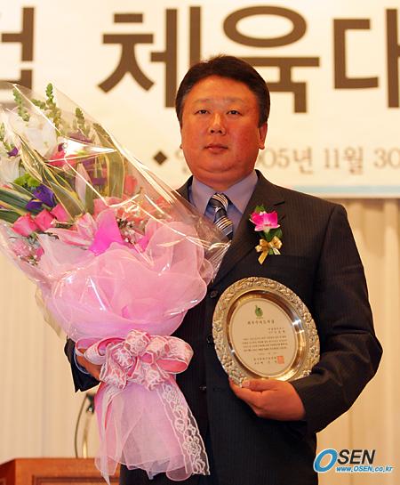 한국체육기자연맹(회장 박건만)이 주최하는 2005 자황컵 체육대상 시상식이 30일 오후 서울 올림픽파크텔에서 열렸다. 프로 사령탑에게 거의 돌아가지 않던 지도자상을 받은 선동렬 삼성 라이온즈 감독이 포즈를 취하고 있다./주지영 기자 jj0jj0@ [Copyright ⓒ OSEN(www.osen.co.kr) 무단전재 및 재배포 금지]
