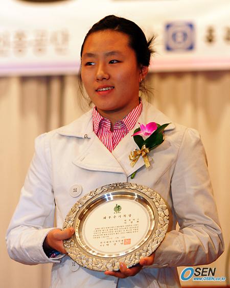 한국체육기자연맹(회장 박건만)이 주최하는 2005 자황컵 체육대상 시상식이 30일 오후 서울 올림픽파크텔에서 열렸다. 최우수 여자 기록상을 수상한 빙상의 이상화가 포즈를 취하고 있다./주지영 기자 jj0jj0@ [Copyright ⓒ OSEN(www.osen.co.kr) 무단전재 및 재배포 금지]