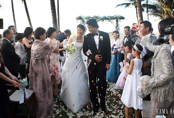 샌디에이고 파드리스의 박찬호(32)가 30일(한국시간) 정오 미국 하와이주 빅아일랜드에서 재일동포 3세 박리혜 씨(29)를 신부로 맞아 재미동포인 문대양 하와이주 대법원장의 주례로 결혼식을 올렸다. 이날 결혼식에는 박찬호 측에서 아버지 박제근씨와 어머니 정동순 씨, 매형 김만섭 팀61 대표, 공주고 동창인 홍원기를 비롯해 가족과 친지 등 30여 명이 참석해 비공개로 진행됐다./팀61, 카마스튜디오 제공 [Copyright ⓒ OSEN(www.osen.co.kr) 무단전재 및 재배포 금지]
