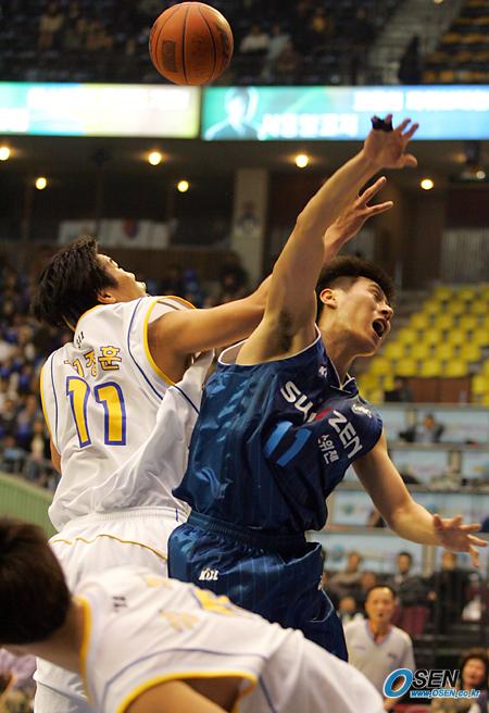 리바운드 다툼 도중 부딪치는 서장훈과 이상민