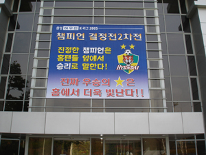 2005년 대망의 프로축구 정상 등극을 눈 앞에 두고 있는 울산이 긴장의 끈을 바짝 조이고 있다. 울산은 지난달 27일 원정경기로 열린 인천과의 2005 K리그 챔피언결정전 1차전에서 5-1로 대승을 거둬 이변이 없는 한 사실상 우승을 예약한 상태다. 하지만 울산은 올시즌 정규리그 24경기 가운데 원정경기에서 8승을 올리는 동안 홈경기에서는 6승으로 상대적으로 부진했다. 홈경기 승률이 50%로 저조해 홈팬들에게 한없이 고개가 숙여지는 처지다. 특히 팀 통산 최초의 300승을 달성(10월3일)하는 경사를 맞기도 했지만 불행히도 홈에서 실패하고 부산 원정경기에서 이뤄 홈팬들에게 면목이 없을 정도. 이에 울산은 1차전 대승의 여세를 몰아 화끈한 공격축구로 화려하게 대미를 장식하겠다는 각오다. 울산의 김정남 감독은 1일 오후 훈련에 앞서 "2차전마저 승리로 장식해 챔피언에 오르자"며 선수들에게 공격축구를 주문했다. 베테랑 노정윤 역시 "이제 시작한다는 각오로 훈련에 임하고 있다"면서 "꼭 홈팬들의 성원에 승리로 보답하겠다"고 마음을 다잡았다. 구단 프런트들도 선수들의 정신무장을 위해 발벗고 나섰다. 울산은 클럽하우스 전면에 '진정한 챔피언은 홈팬들 앞에서 승리로 말한다'는 대형 플래카드(540mmX460mm)를 게시해(사진) 선수단의 기운을 북돋우고 있다. 플레이오프에서 톡톡한 효과를 봤던 음악 처방도 계속 내리고 있다. 선수단의 이동시간이나 식사 시간에 퀸의 'We are the Champion'과 조수미의 '챔피언'을 계속해서 들려주고 있다. 국영호 기자 iam905@ [Copyright ⓒ OSEN(www.osen.co.kr) 무단전재 및 재배포 금지]