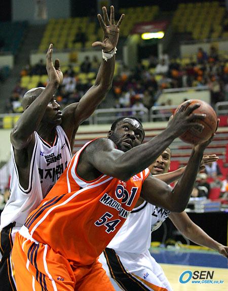 1일 부천 실내체육관에서 벌어진 2005~2005 KCC 프로농구 인천 전자랜드 블랙슬래머와 부산 KTF 매직윙스의 경기서 KTF가 106-83으로 대승을 거뒀다. KTF의 딕슨이 전자랜드 리 벤슨(왼쪽)과 온타리오 렛을 피하며 골밑슛 기회를 노리고 있다./부천=주지영 기자 jj0jj0@ [Copyright ⓒ OSEN(www.osen.co.kr) 무단전재 및 재배포 금지]