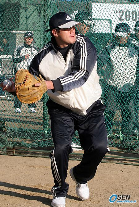 '2005 아디다스 야구캠프'가 메이저리거 서재응 최희섭 및 LG의 박용택, SK의 이진영 등이 참여한 가운데 2일 잠실구장에서 열렸다. 서재응이 오후에 벌어진 연습경기에 앞서 포수 미트를 끼고 시범을 보이고 있다./잠실=주지영 기자 jj0jj0@osen.co.kr [Copyright ⓒ OSEN(www.osen.co.kr) 무단전재 및 재배포 금지]