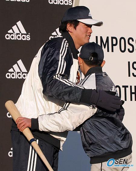 '2005 아디다스 야구캠프'가 메이저리거 서재응 최희섭 및 LG의 박용택, SK의 이진영 등이 참여한 가운데 2일 잠실구장에서 열렸다. 행사가 모두 끝난 뒤 최희섭이 자신의 이름을 딴 상을 받은 어린이에게 방망이를 선물한 뒤 포옹하고 있다./잠실=주지영 기자 jj0jj0@ [Copyright ⓒ OSEN(www.osen.co.kr) 무단전재 및 재배포 금지]
