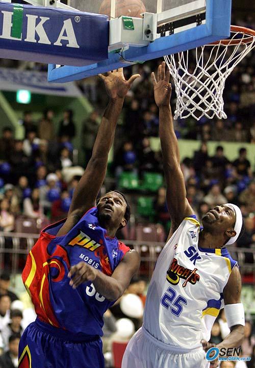 3일 잠실학생체육관에서 벌어진 2005~2006 KCC 프로농구 서울 SK와 울산 모비스의 경기 4쿼터서 모비스의 올 '최고 용병' 크리스 윌리엄스(왼쪽)가 SK의 브라운을 제치고 골밑슛을 성공시키고 있다. 윌리엄스는 시즌 4번째 트리블더블을 기록했다./잠실학생체=손용호 기자 spjj@ [Copyright ⓒ OSEN(www.osen.co.kr) 무단전재 및 재배포 금지]