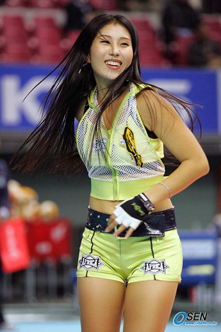 프로배구 KT&G 2005-2006 V-리그가 3일 대전 천안 구미에서 개막됐다. 대전 충무체육관서 벌어진 KT&G와 GS칼텍스의 여자부 경기 도중 치어리더가 춤을 추며 긴 머리를 날리고 있다. /대전=주지영 기자 jj0jj0@ [Copyright ⓒ OSEN(www.osen.co.kr) 무단전재 및 재배포 금지]