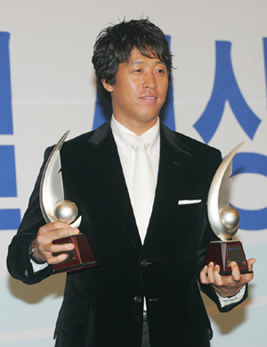 "내가 정말 맞나요". LG 트윈스 좌타강타자 이병규(31)가 올해 스포츠맨 중 베스트드레서에 선정됐다. 이병규는 5일 저녁 6시 서울 소공동 롯데호텔 크리스탈 볼룸에서 열리는 ‘2005 코리아 패션 월드 어워드’에서 남자 스포츠부문 베스트 모델상을 수상한다. '코리아 패션 월드 어워드'는 패션쇼 전문업체인 씨아이 엔터테인먼트가 주최하는 행사로 각 분야에서 활발한 활동을 펼친 스타들에게 수상의 영예가 주어진다. 올해가 세번째 행사. 부문별 시상자로는 영화배우 박해일, 탤런트 박선영, 가수 SG워너비, 장윤정, 개그맨 정만호 등이 참석한다. 이병규는 처음 구단 홍보팀을 통해 수상자로 선정됐다는 소식에 "정말 내가 맞냐"면서 다소 의아해했다는 후문이다. 이병규는 평소 패션에 크게 관심을 갖지 않는 선수로 알려졌기 때문. 하지만 이병규는 결혼후 부인이 패션 관리를 해주면서 멋쟁이가 되고 있다고 한다. 한편 이병규는 올시즌 119경기에 나서 타율 .337(1위) 157안타(1위) 9홈런 75타점(7위)을 거두며 LG타선을 이끌었다. 이병규는 시즌 종료후 LG‘특별관리조’에 편성돼 11월말까지 구리구장과 잠실구장에서 컨디셔닝 훈련에 전념했고, 12월초부터 웨이트와 수영 등으로 자율훈련을 실시중이다. 지난 달 열렸던 MVP 시상식장에서 수위타자 상을 받았을 때의 모습. /LG 트윈스 제공 박선양 기자 sun@ [Copyright ⓒ OSEN(www.osen.co.kr) 무단전재 및 재배포 금지]