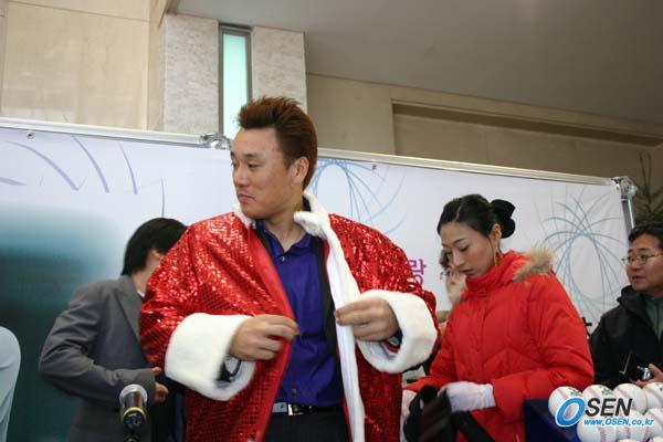 롯데 마린스의 이승엽이 4일 오후 추운 날씨에서도 서울 소공동 롯데백화점 앞에서 불우이웃돕기를 위해 사인볼을 개당 1만 원에 팔고 성금함도 마련해 팬사인회를 가졌다. 이승엽이 사인회에 앞서 산타 클로스 복장을 갖추고 있다./박승현 기자 nanga@ [Copyright ⓒ OSEN(www.osen.co.kr) 무단전재 및 재배포 금지]