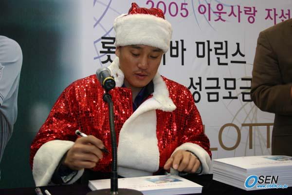 산타 클로스 복장으로 사인회를 갖는 이승엽