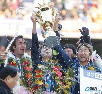 울산 현대가 'Again 1996'을 일궈냈다. 울산은 4일 울산 문수월드컵 경기장에서 열린 삼성 하우젠 2005 K리그 챔피언 결정 2차전에서 최성국이 전반 18분 득점포를 쏘아올렸지만 라돈치치가 2골을 넣은 인천 유나이티드 FC에 1-2로 무릎을 꿇었다. 이로써 인천과 1승1패가 됐지만 지난달 27일 인천 문학 월드컵 경기장에서 열렸던 챔피언 결정 1차전에서 5-1로 승리했던 울산이 골득실에서 앞서 지난 1996년 정상에 오른 이후 9년만에 또 하나의 별을 달았다. 또 울산의 지휘봉을 잡고 있는 김정남 감독은 지난 1989년 유공(현재 부천 SK)에서 정상으로 이끈 뒤 무려 16년만에 챔피언팀 감독이 되는 기쁨을 누렸다. 이날 경기에서 울산의 '미꾸라지' 이천수는 최성국의 동점골 어시스트로 50경기만에 20골, 20어시스트를 기록하며 최소경기 '20-20 클럽' 가입을 달성, 최우수선수(MVP)에 도전장을 내밀었다. 울산은 1차전 4골차 대승으로 긴장이 풀려 느긋했던 나머지 어이없는 실수로 인천에게 선제골을 내줬다. 울산 골키퍼 김지혁이 전반 14분 김치우의 슈팅을 잡은 뒤 동료 수비수들에게 공을 굴려 던져준 것이 그만 라돈치치에게 연결되는 실수를 저지른 것. 인천으로서는 지난 1차전 울산처럼 이른 시간대에 득점이 나와 역전우승 기적이라는 꿈을 꾸기에 충분했지만 울산은 불과 4분만에 인천의 이런 꿈을 무너뜨렸다. 전반 18분 미드필드 지역에서 이천수가 머리로 떨어뜨려준 공을 최성국이 수비수 2명을 끼고 페널티지역 오른쪽에서 오른발로 슈팅, 동점골로 연결시킨 것. J리그에서 뛰다가 올시즌 후기리그 울산에 복귀한 최성국의 올시즌 첫 번째 골이었다. 인천 선수들은 최성국이 공을 받을 때 손을 썼다며 반칙을 주장했지만 항의는 받아들여지지 않았다. 전반 26분 라돈치치가 페널티 지역 오른쪽 바깥에서 쏜 왼발 중거리 슈팅으로 골을 허용하며 전반을 1-2로 뒤진 울산은 슈팅숫자 10-2가 말해주듯 후반에도 3골차를 만회하기 위한 인천의 파상공세에 밀렸지만 경험많은 수비수 조세권과 유경렬의 노련한 플레이로 인천의 공격을 잘 막아내며 더이상 실점하지 않고 경기를 끝냈다. 반면 지난 1984년 대우 시절 선수 신분으로 우승을 차지했고 지난 1997년 당시 수석 코치 신분으로 부산 대우 우승의 기쁨을 맛봤던 장외룡 인천 감독은 1차전 대패를 만회하지 못하고 아쉽게도 준우승에 그치며 '트리플 크라운'의 영예를 맛보는 데 실패했다. ■ 챔피언 결정 2차전 (4일) △ 울산 울산 1 (1-2 0-0) 2 인천 ▲득점 = 최성국 1호(전18분, 도움 이천수·울산) 라돈치치 8-9호(전14분-전26분·인천) ■ 역대 K리그 챔피언 1983 - 할렐루야 1984 - 대우 1985 - 럭키금성 1986 - 포항제철 1987 - 대우 1988 - 포항제철 1989 - 유공 1990 - 럭키금성 1991 - 대우 1992 - 포항제철 1993 - 일화 1994 - 일화 1995 - 일화 1996 - 울산 현대 1997 - 부산 대우 1998 - 수원 삼성 1999 - 수원 삼성 2000 - 안양 LG 2001 - 성남 일화 2002 - 성남 일화 2003 - 성남 일화 2004 - 수원 삼성 2005 - 울산 현대 울산=박상현 기자 tankpark@, 국영호 기자 iam905@ [Copyright ⓒ OSEN(www.osen.co.kr) 무단전재 및 재배포 금지]