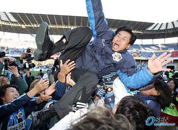 너무나도 오랜만에 맛본 쾌감이었다. 눈물이 흐르는지도 몰랐다. 울산의 김정남 감독이 무려 16년만에 프로축구 정상에 올랐다. 김 감독이 이끄는 울산은 4일 울산 문수월드컵경기장에서 열린 인천과의 K리그 챔피언결정전 2차전 홈경기에서 1-2로 졌지만 1.2차전 합계 6-3으로 올해 최고봉에 등극했다. 지난 89년 유공(현 부천) 시절 마지막으로 프로축구 우승컵을 들여올렸던 김 감독이 다시 우승컵에 입맞춤하기까지는 강산이 한번 변하고도 6년이나 더 흘렀다. 지난 2000년 울산의 지휘봉을 잡은 김 감독은 이번 우승까지 험난한 여정을 걸어왔다. 지난 2002년 준우승에 이어 이듬해인 2003년에는 야심차게 시즌을 출발했지만 정상 문턱에서 또 다시 고배를 마셔 2위로 시즌을 마감했다. 심기일전한 지난해에도 4강 플레이오프에 올랐지만 그걸로 끝이었다. 3전4기를 이룬 김 감독은 대표팀 사령탑으로는 지난 86아시안게임에서 우승을 차지한 명장. 86멕시코월드컵과 88서울올림픽에서 대표팀을 이끌기도 했다. 한편 울산의 이번 우승은 9년만이다. 지난 96년 고재욱 감독 시절 처음이자 마지막으로 우승을 차지했었던 울산은 98년을 시작으로 2002년과 2003년 준우승에 그쳤었다. 김 감독과 울산은 이래저래 어느 때보다 따뜻한 겨울을 맞게 됐다. 울산=국영호 기자 iam905@ [Copyright ⓒ OSEN(www.osen.co.kr) 무단전재 및 재배포 금지]